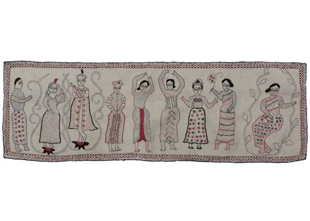 Kantha of Bengal is a traditional embroidery technique from Bengal, India, and Bangladesh. Artisans create it by layering old cotton sarees and stitching them together. The running stitch creates both functional quilts and decorative textiles. Kantha is the sustainable craft that recycles the fabrics into the useable art. You will be able to identify the authentic Kantha by its slightly puckered texture and hand stitched patterns. This tradition dates to the centuries and then pass through generations of the Bengali Women.